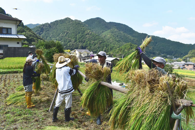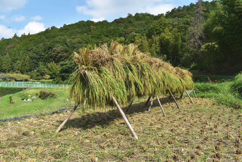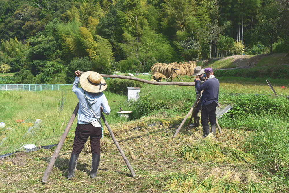 最近では稲刈りと脱穀は機械ですることが多いので、だてかけで乾燥させることはあまりないそうです。貴重な経験です。