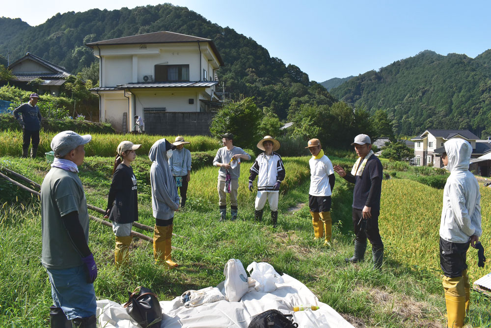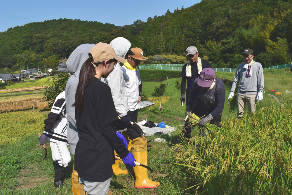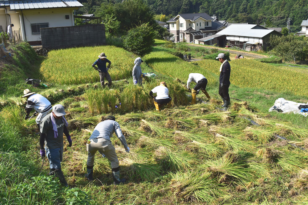 今年はいつもより少人数のため、田植えをした3枚の田んぼのうちの1枚を刈ります。