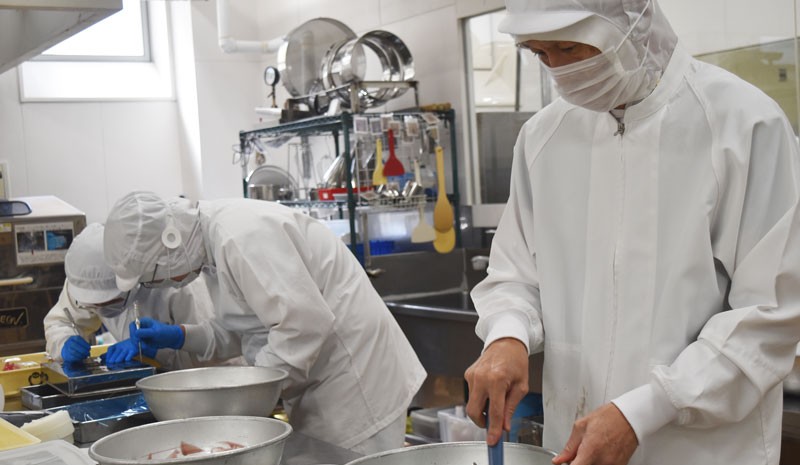 おなかの形をつくる人、目をつくる人、羊羹の色付けをする人…