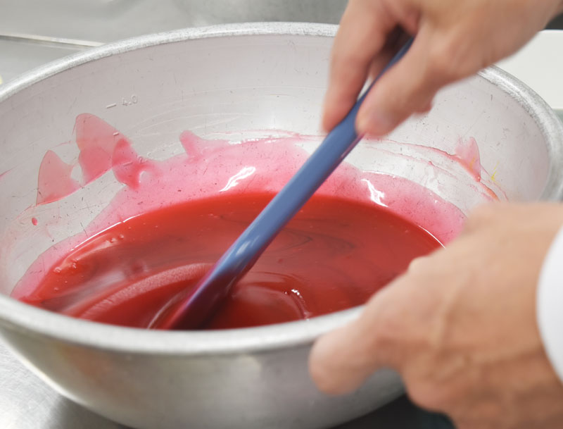 さて、ここからが今回の最も大事な部分。目が滲んでしまわないよう錦玉羹でコーティングしていきます。