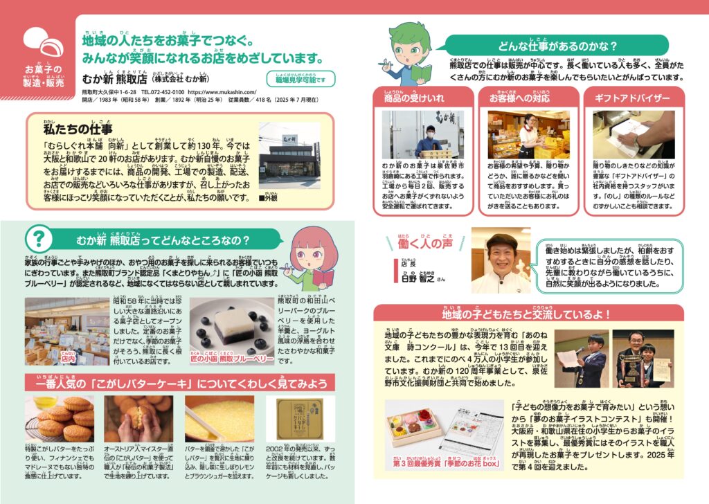 熊取町版「小学生のためのお仕事ノート(2025年度 中学年用)」の中で、むか新 熊取店をご紹介いただきました。地域の小学生に向けて「むか新では、どんな人が、どんな仕事をしているんだろう?」という点をわかりやすく伝える内容になっています。