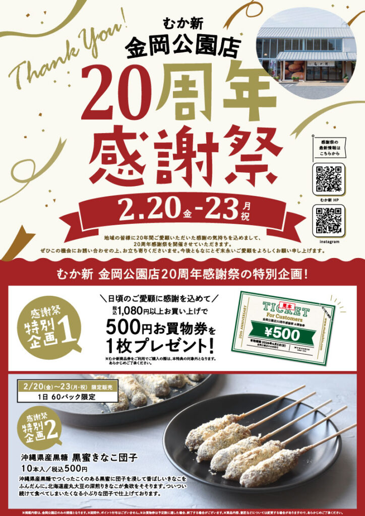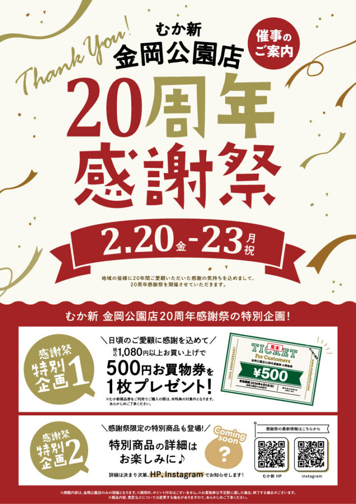 『金岡公園店20周年感謝祭』を2月20日(金)~2月23日(月・祝)の4日間開催いたします。