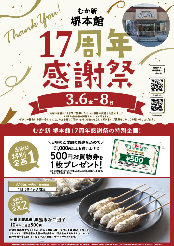 【催事】3/6(金)~3/8(日)は堺本館17周年感謝祭