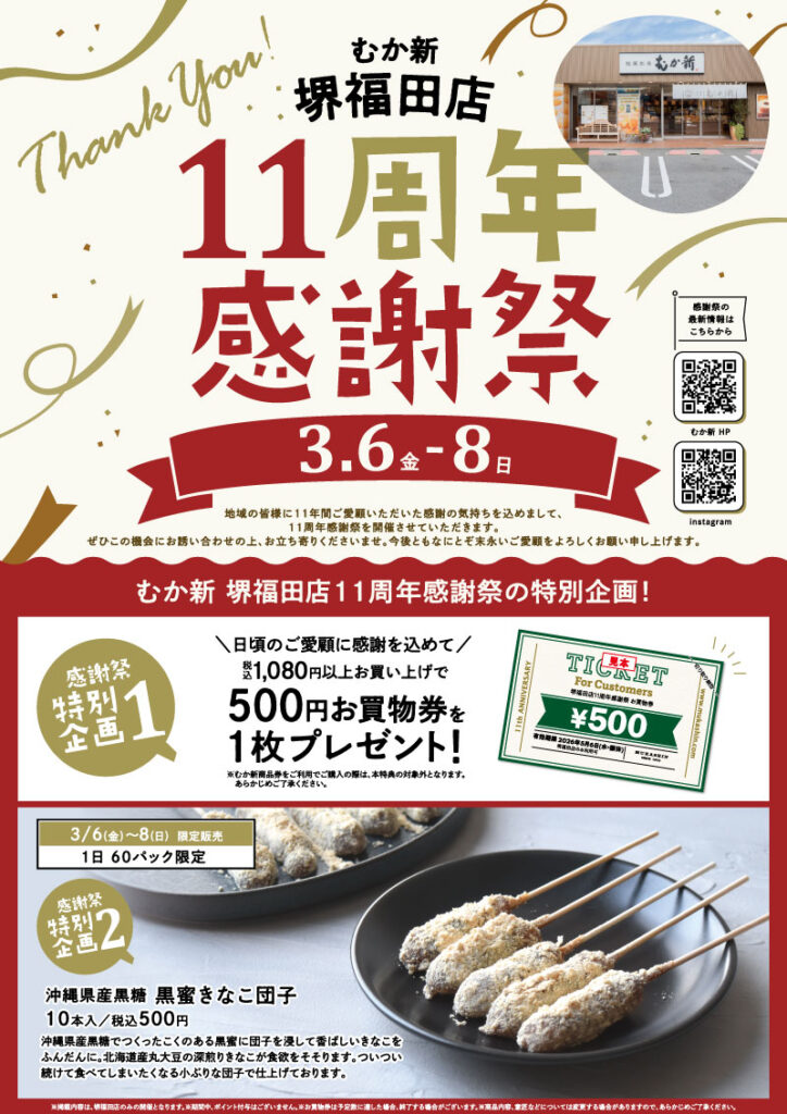 【催事】3/6(金)~3/8(日)は堺福田店11周年感謝祭