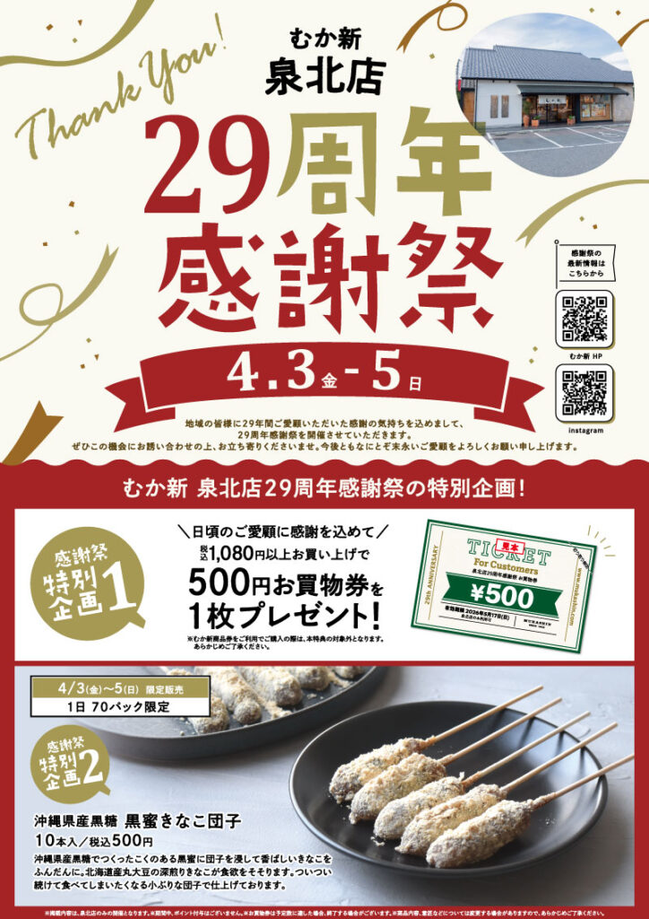 【催事】4/3(金)~5(日)は泉北店29周年感謝祭