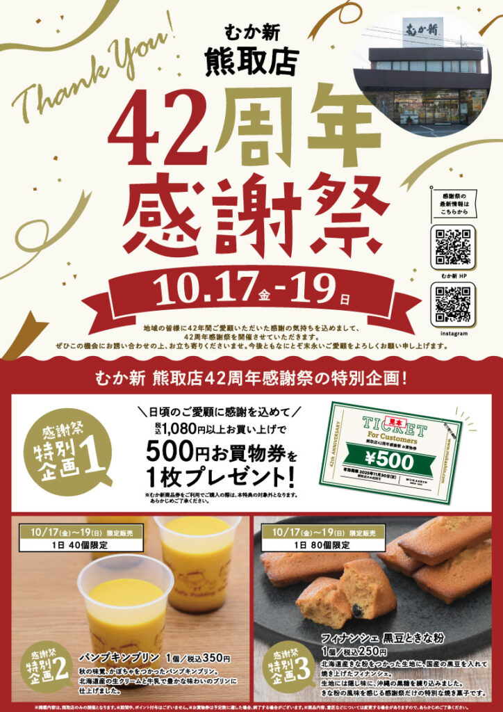 『熊取店42周年感謝祭』を10月17日(金)~19日(日)の3日間開催いたします。