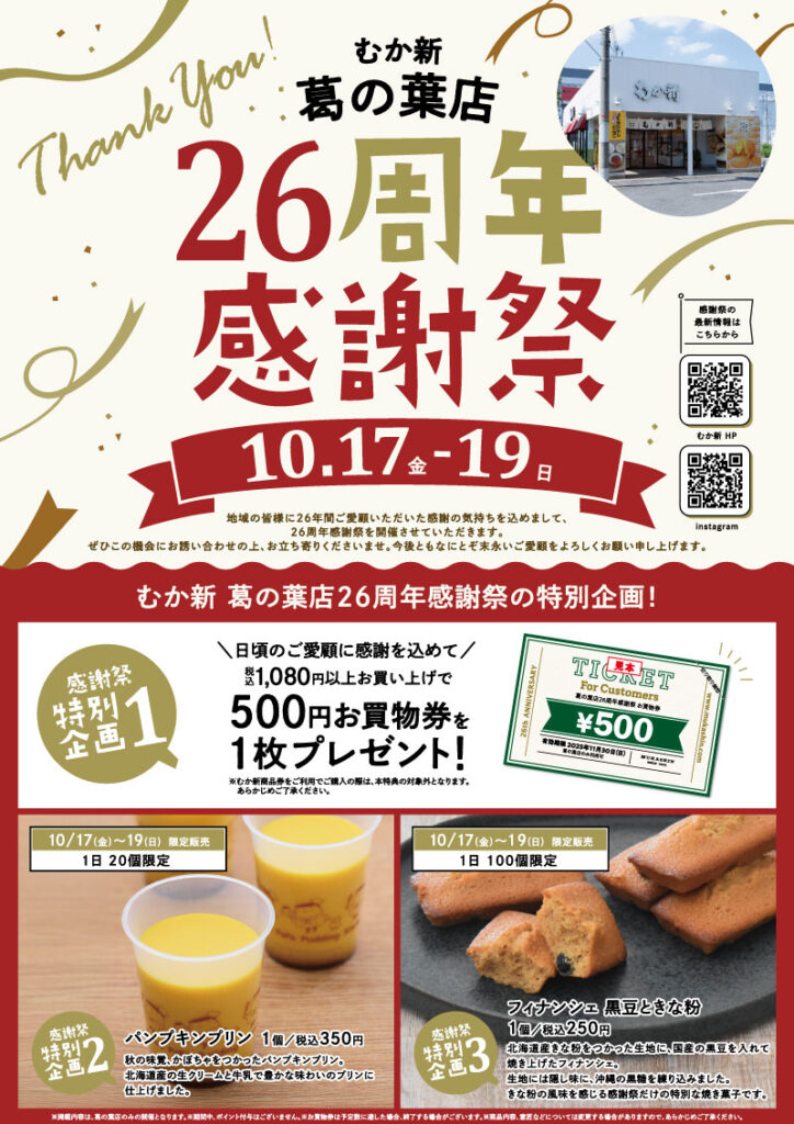 『葛の葉店26周年感謝祭』を10月17日(金)~19日(日)の3日間開催いたします。
