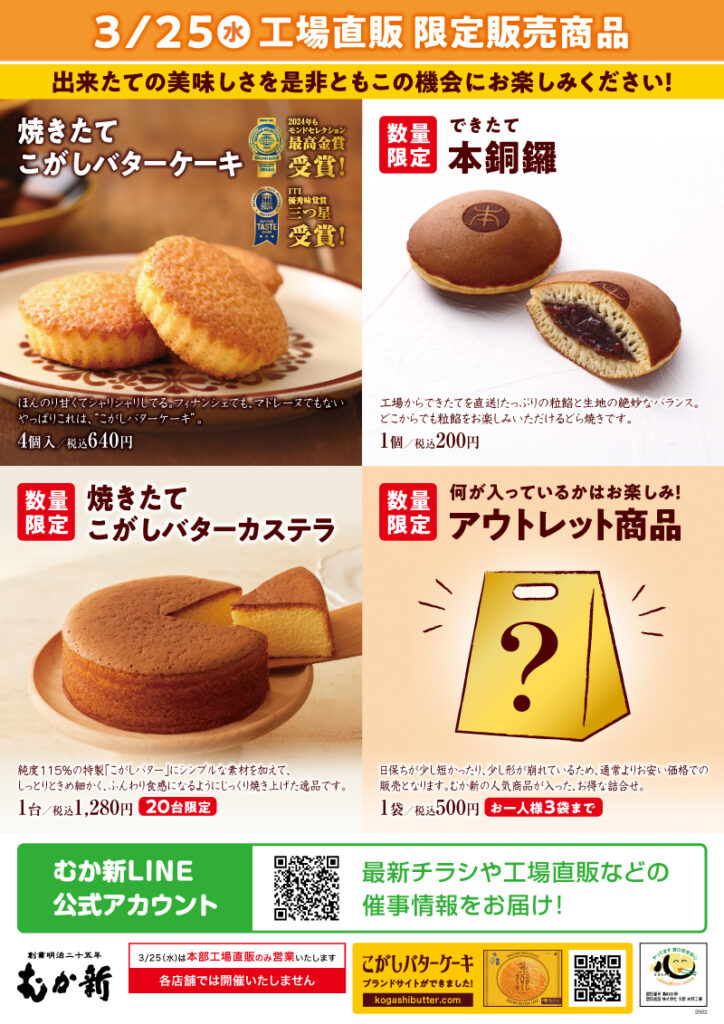 3月も「焼き立てこがしバターケーキ工場直販」を開催いたします!