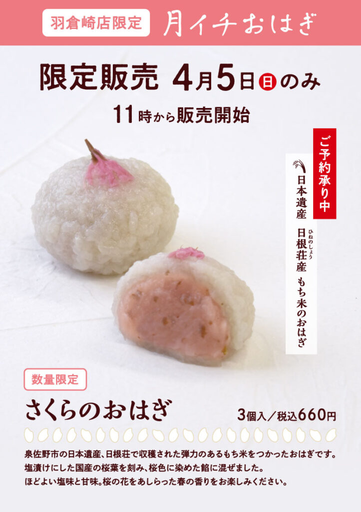 4月5日(日) のみ11時から『さくらのおはぎ』を数量限定販売