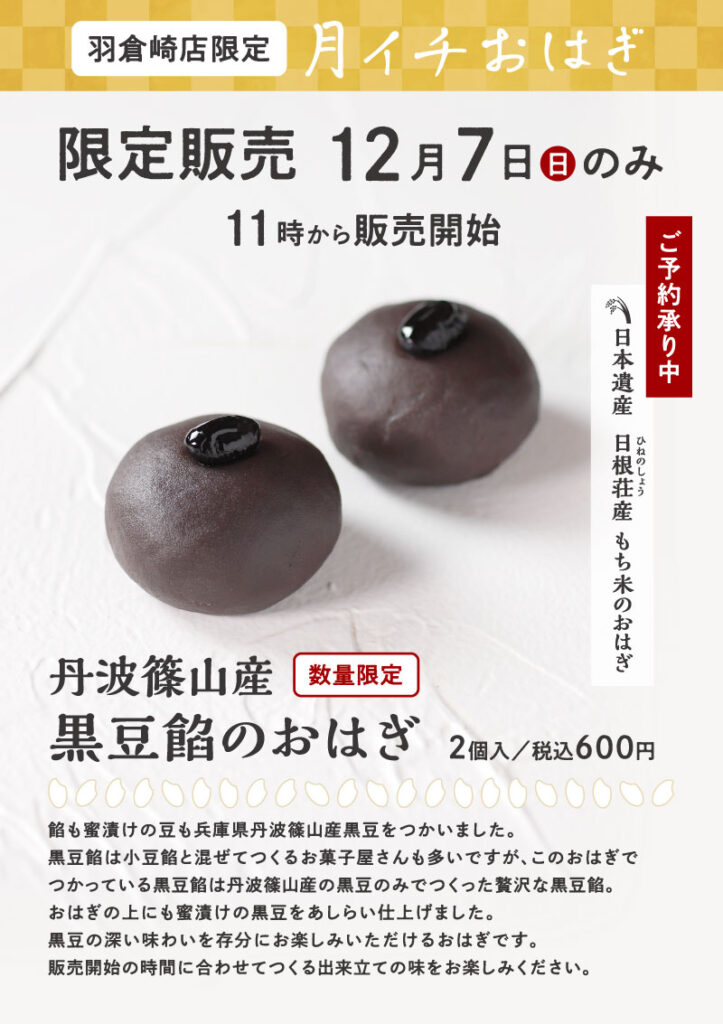 2025年4月より、むか新羽倉崎店にて開始した『月イチおはぎ』の販売。